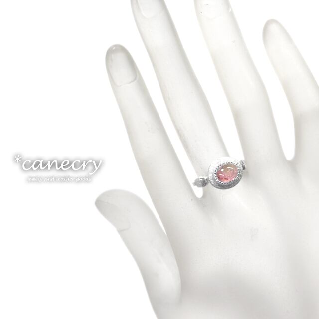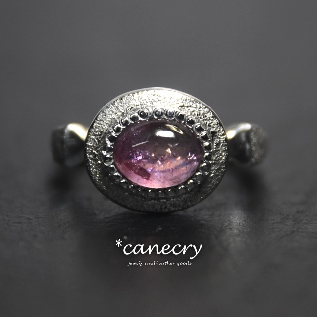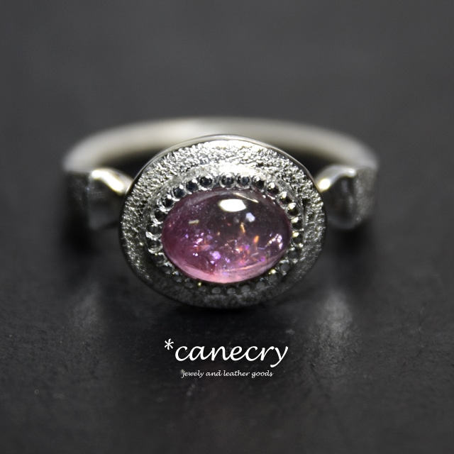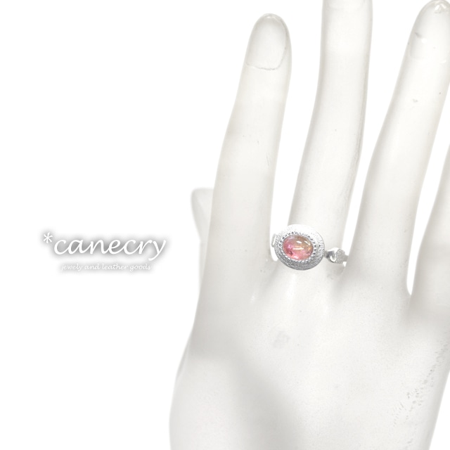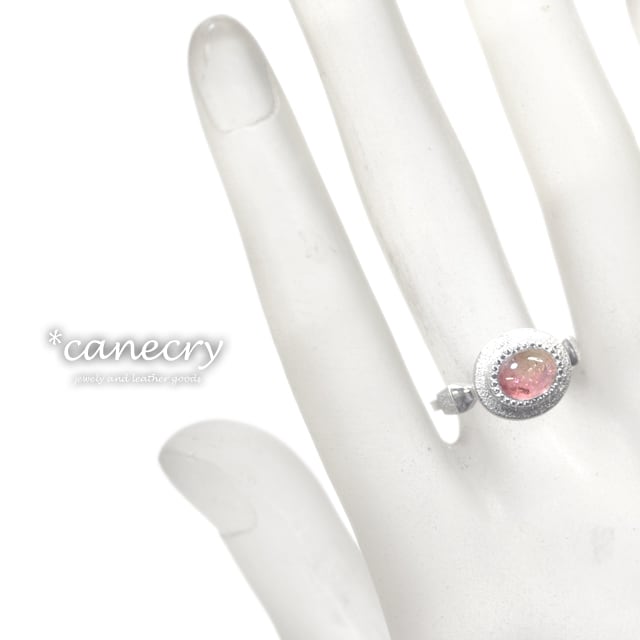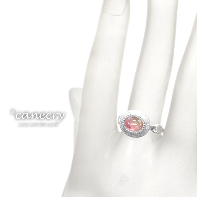 ミルキーピンクのバイカラートルマリンを研磨し、クラシカルなリングに仕上げました。