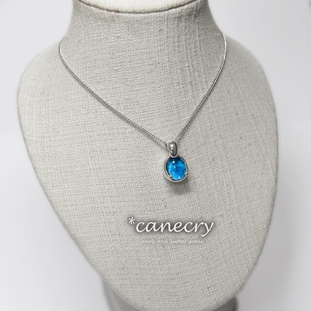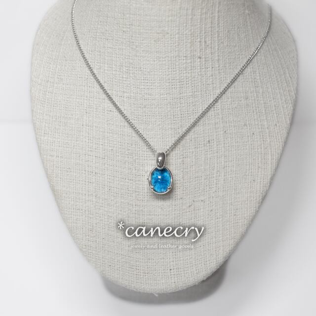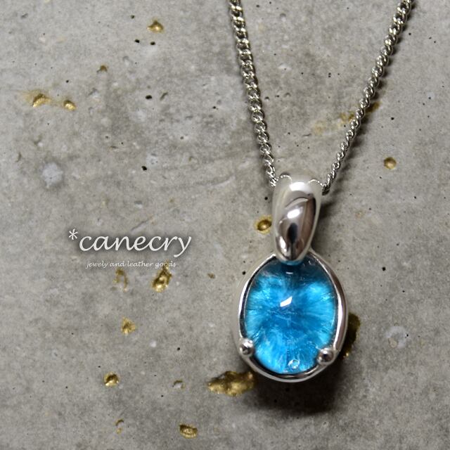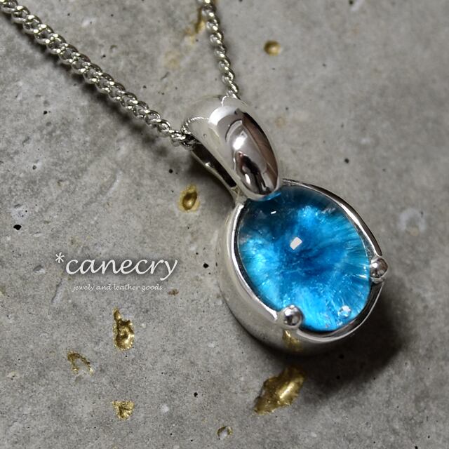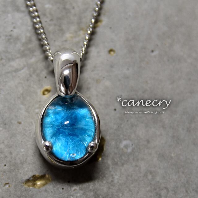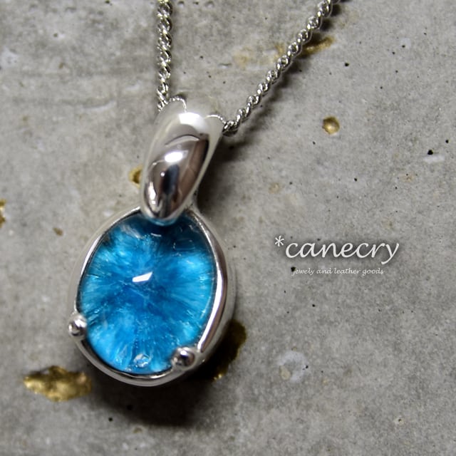 深いブルーの放射状の結晶が特徴的なカバンサイトのネックレスです。