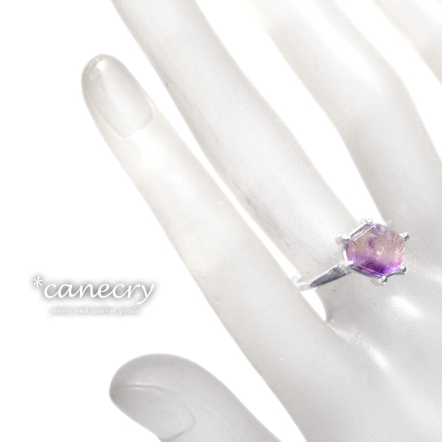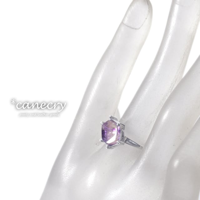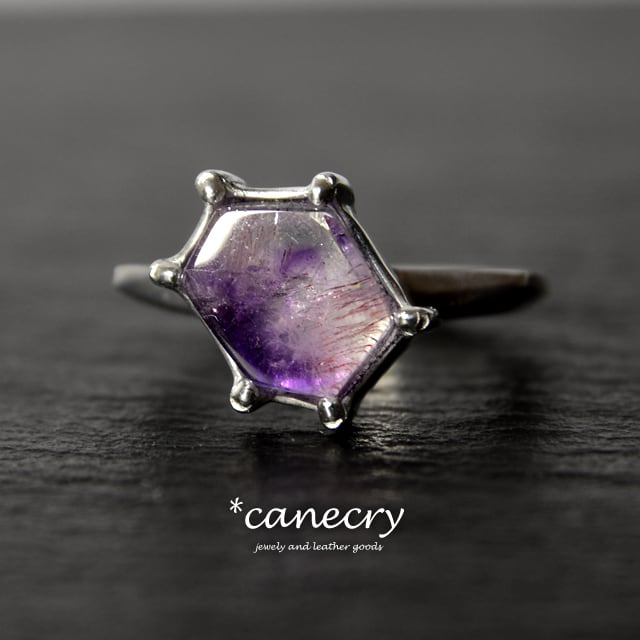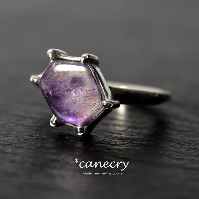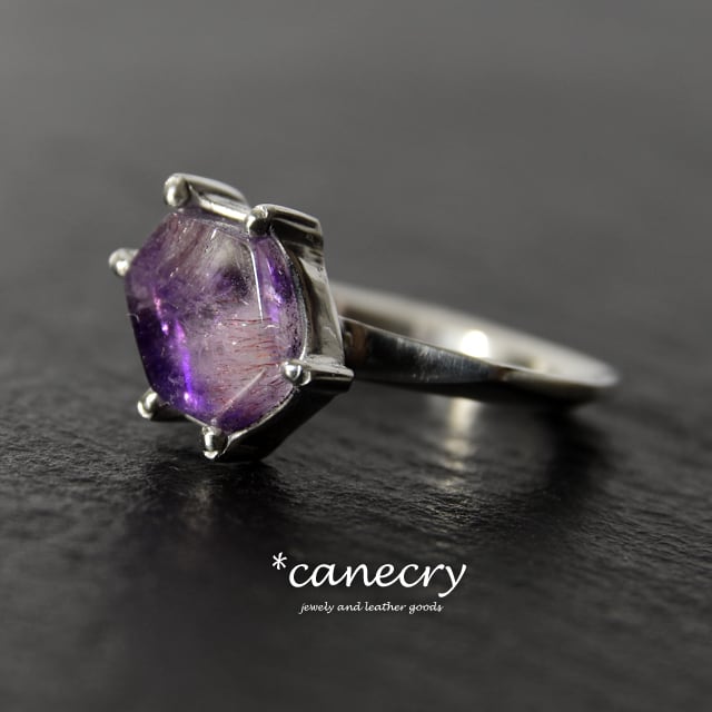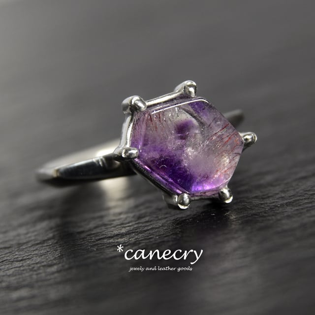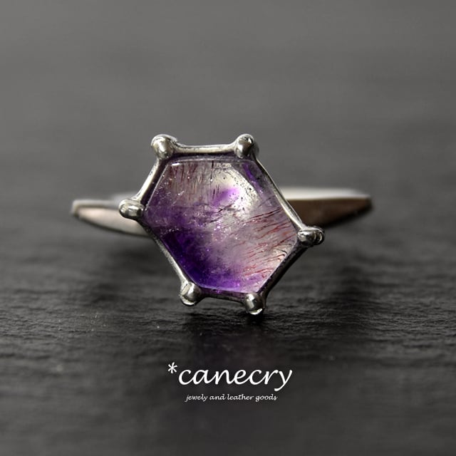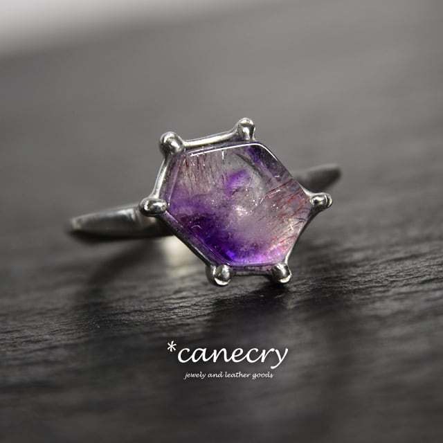 レピドクロサイトとゲーサイトがはいったインクルージョンクォーツ(アメジスト)を使ったシンプルなリングです。