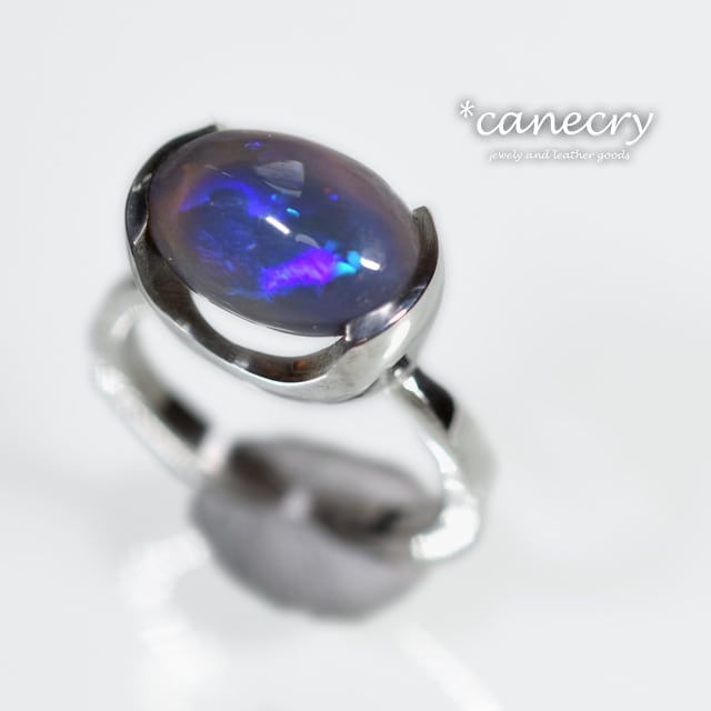 オーストラリア、ライトニングリッジ原産、ブラック・オパールをカットし、リングに仕立てました。
