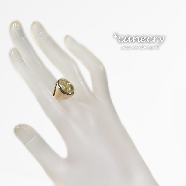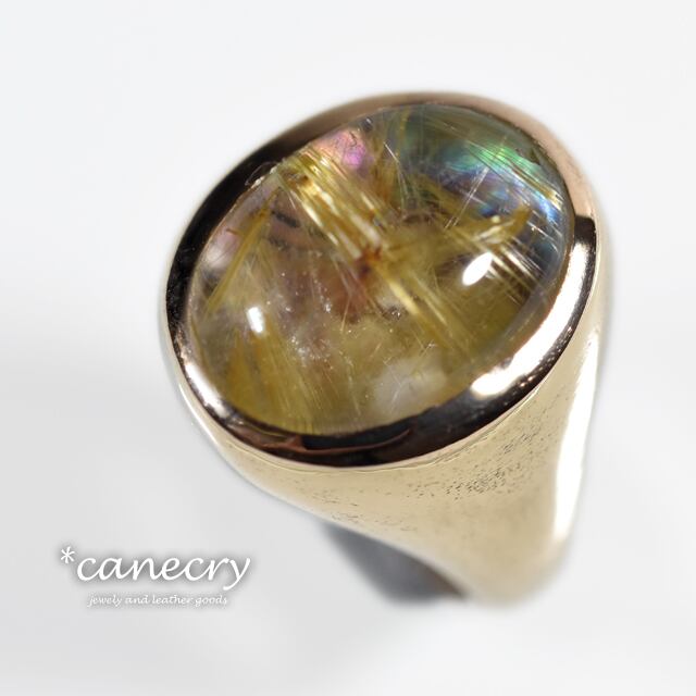 オーストラリア産のパウアシェルとルチルクォーツを重ね合わせたダブレット石を使った、存在感のあるリングです。