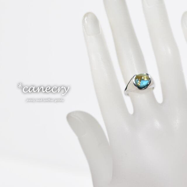 スライスしたターコイズにルチルクォーツを重ねた、ダブレットストーンのリングです。