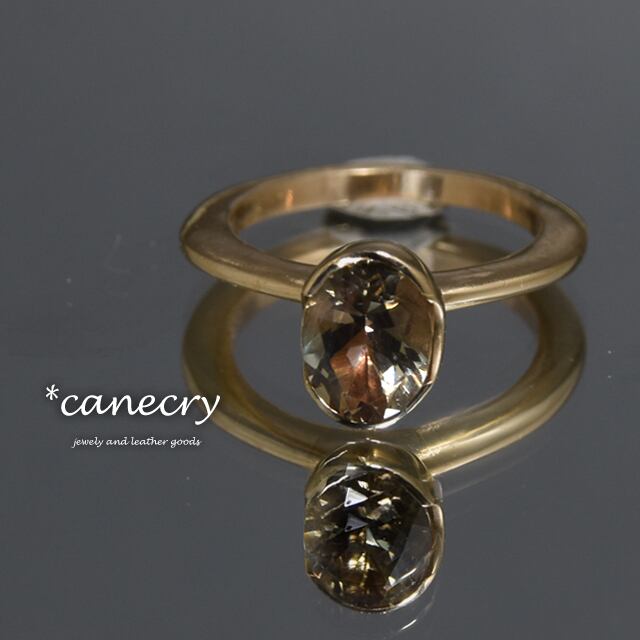 アメリカ、オレゴン州で産出するラブラドライト、通称、オレゴンサンストーンのリングです。通常光では薄いブラウン色、強い光をあてたり、角度によってグリーン等のシラーで見た目が変化します。