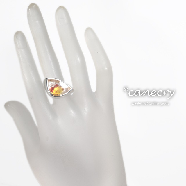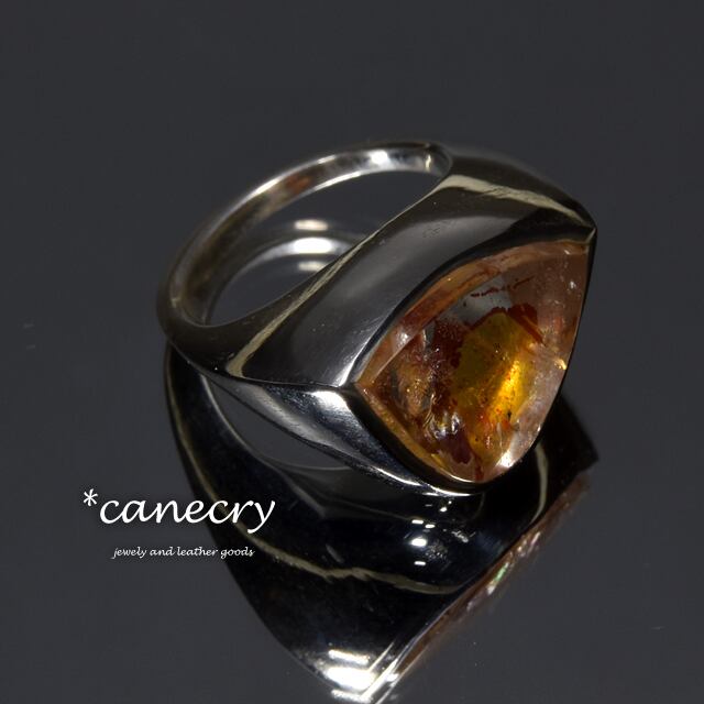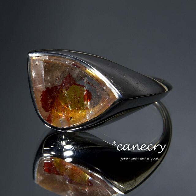 褐鉄鉱(リモナイト)&赤鉄鉱(ヘマタイト)が内包された水晶を使った、存在感のあるリングです。