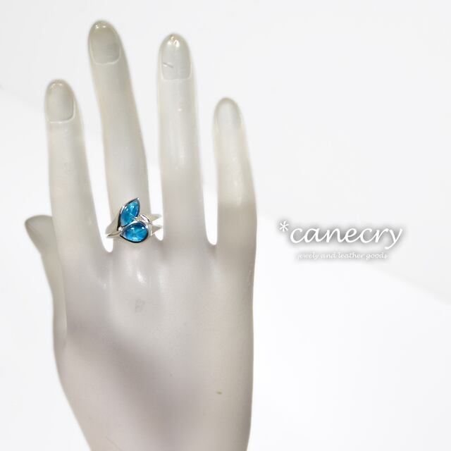 深いブルーの放射状の結晶が特徴的なカバンサイトのリングです。