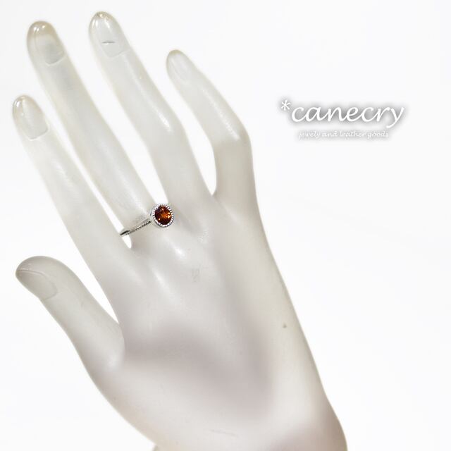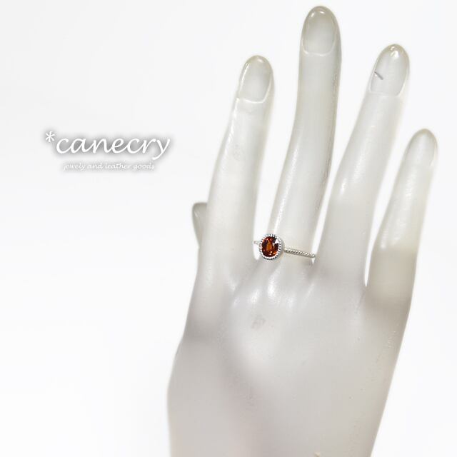 シックなオレンジカラーが印象的な、ナイジェリア産のスペサルティンガーネットのリングです。