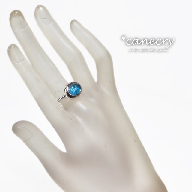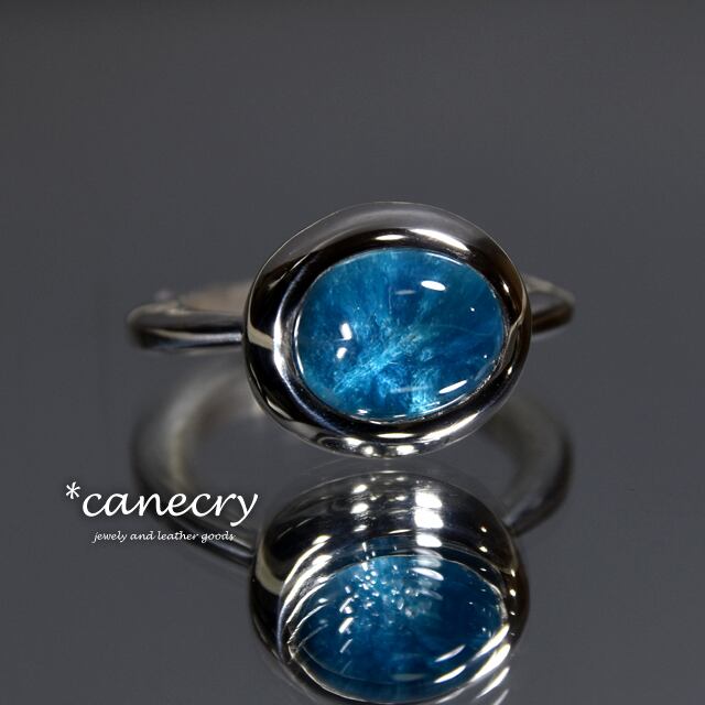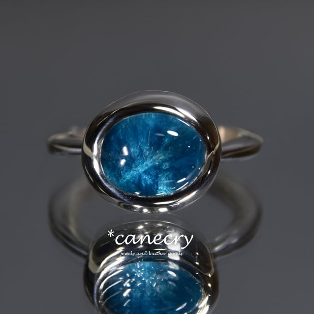 深いブルーの放射状の結晶が特徴的なカバンサイトのリングです。