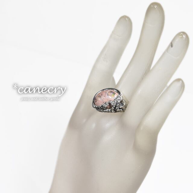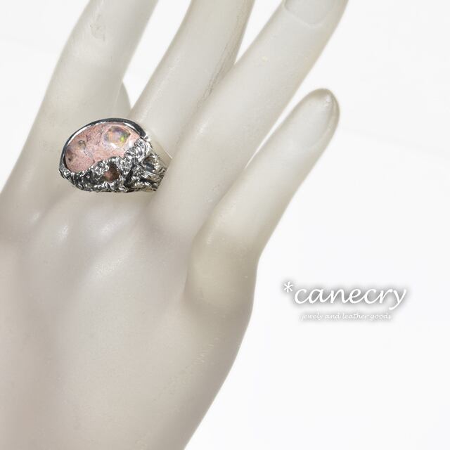 メキシコ産のカンテラオパールを使った個性的なリングです。