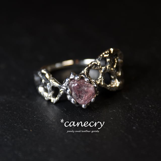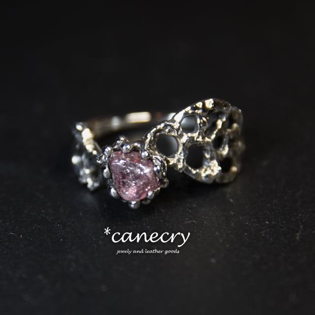 ミャンマー、モゴク産のスピネル原石を使った個性的なリングです。