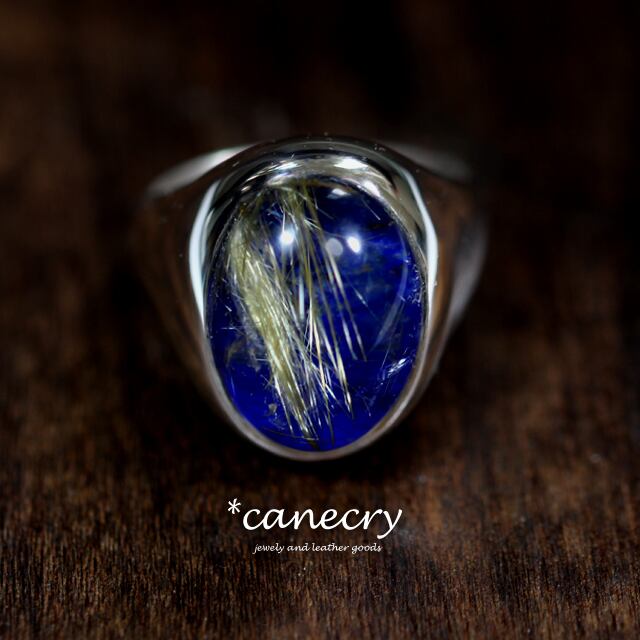 ルチルクォーツとラピスラズリを重ね、リング枠に留めたリングです。