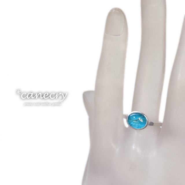 深いブルーの放射状の結晶が特徴的なカバンサイトのリングです。
