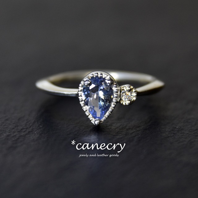 サイドにダイヤモンドをあしらった、シンプルなデザインのタンザナイトのリングです。