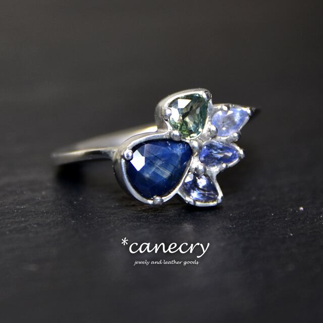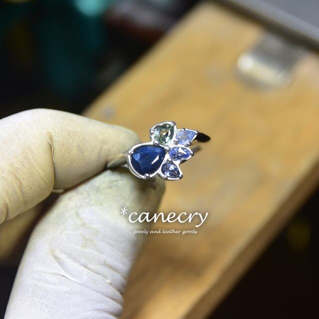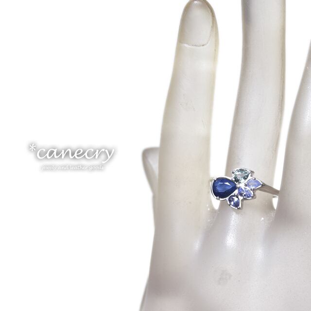 青系ペアシェイプ サファイア/タンザナイトの盛り合わせリング