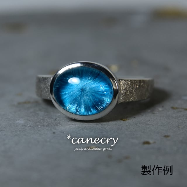 深いブルーの結晶が特徴的なペンタゴナイトで作るオーダージュエリーです。