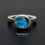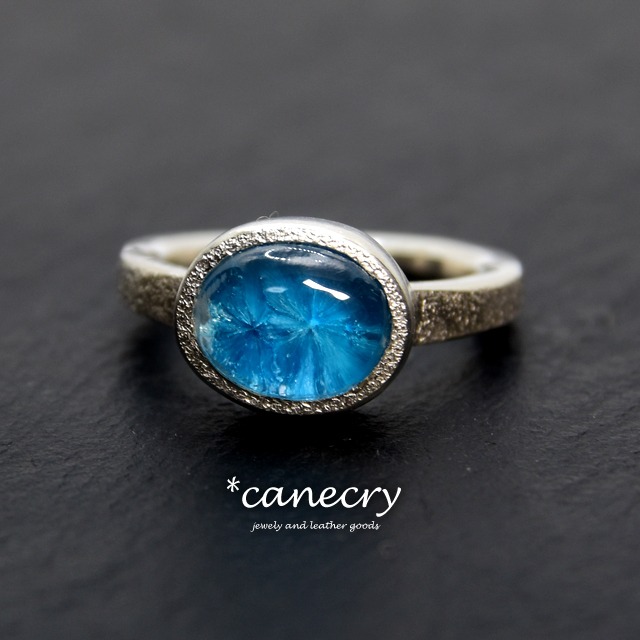 深いブルーの放射状の結晶が特徴的なカバンサイトのリングです。